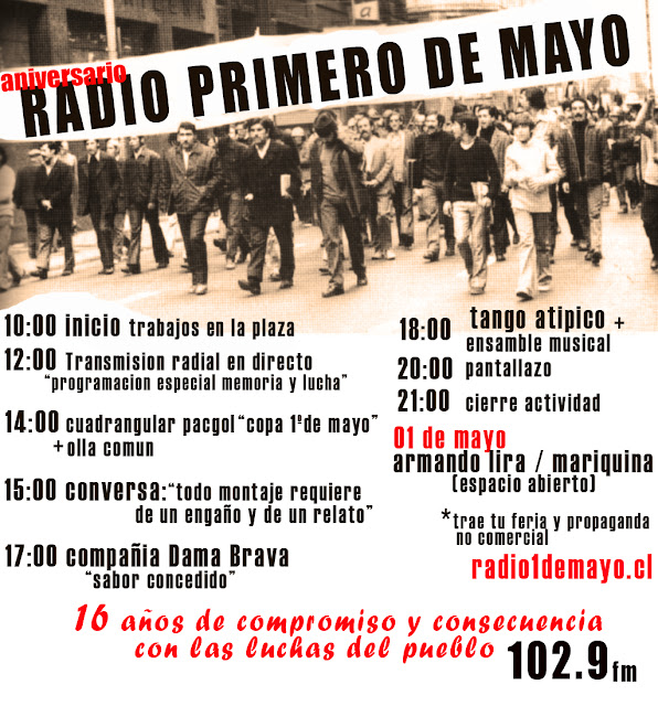 Radio Primero de Mayo invita cordialmente a participar en el Aniversario de la Radio, que cumple 16 años de compromiso y consecuencia con las luchas de nuestro pueblo.